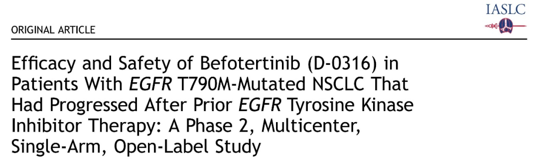 JTO杂志发表贝福替尼治疗继发性T790M突变患者的临床研究